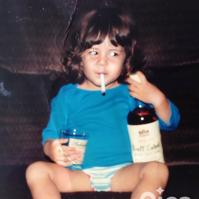 Née en Nouvelle Calédonie le 02 février 1985, elle est l'ainée de deux soeurs et un frère. Comme vous pouvez le voir, elle montrait déjà très bien le bon exemple (photo non retouchée, merci Papa et Maman!).